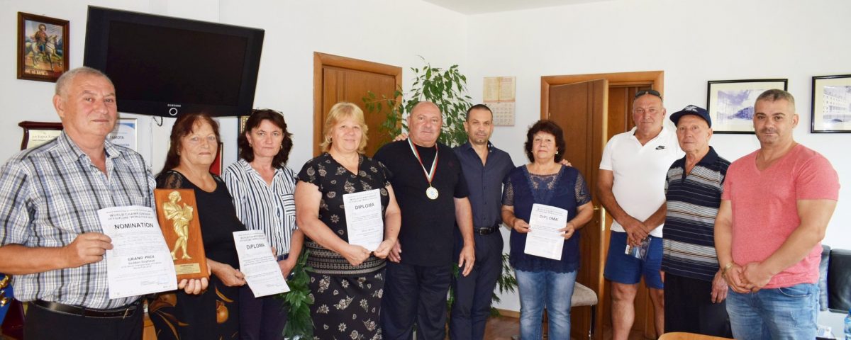 За да споделят своите награди, част от ансамбъла посетиха кметът на Община Сандански – Кирил Котев, с благодарност за оказаната подкрепа, която общинското ръководство им дава. От своя страна кметът Котев им пожела здраве и още много успехи, които да популяризират не само нашия регион, но и българския дух и фолклор.