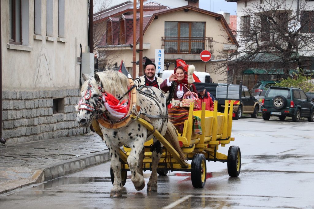 С този традиционен поздрав днес Баба Марта пристигна при децата с каручка и раздаде мартеници на стотици граждани и гости на Банско.