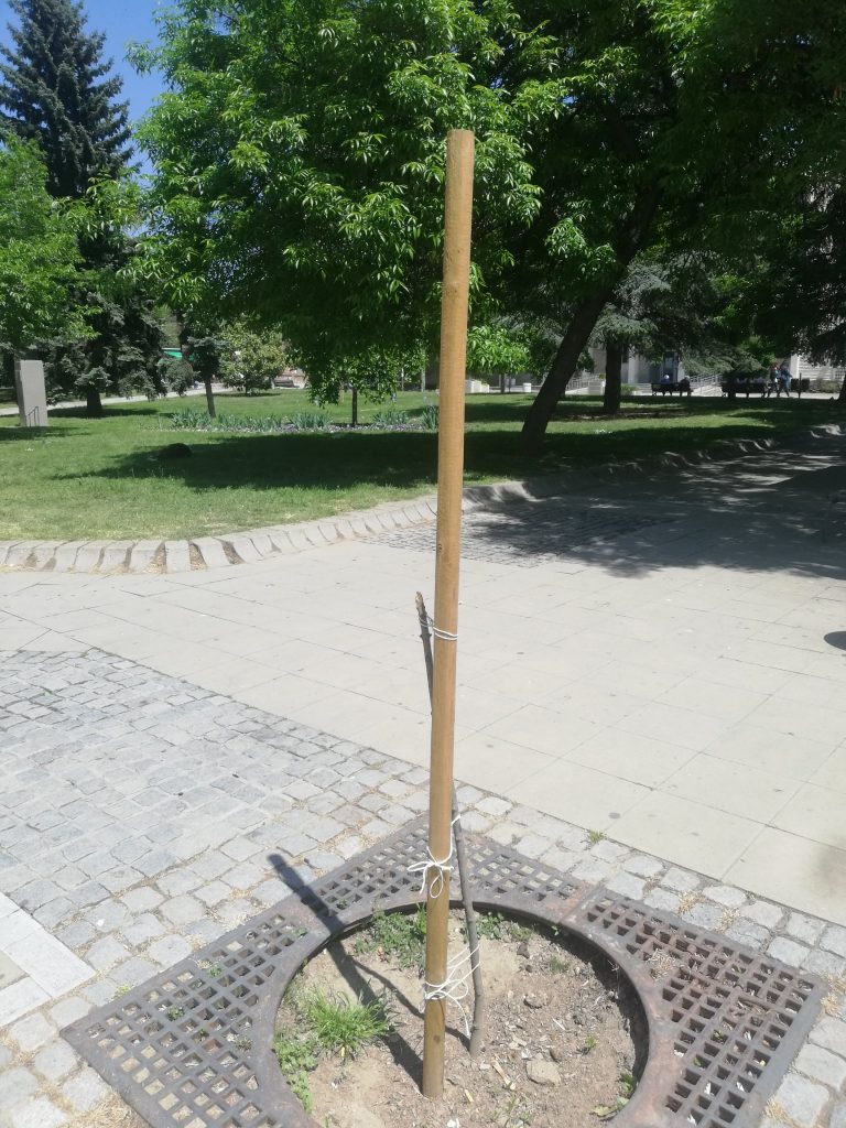 Неизвестни към момента лица са прекършили новозасадени дръвчета по улица „Тодор Александров“.