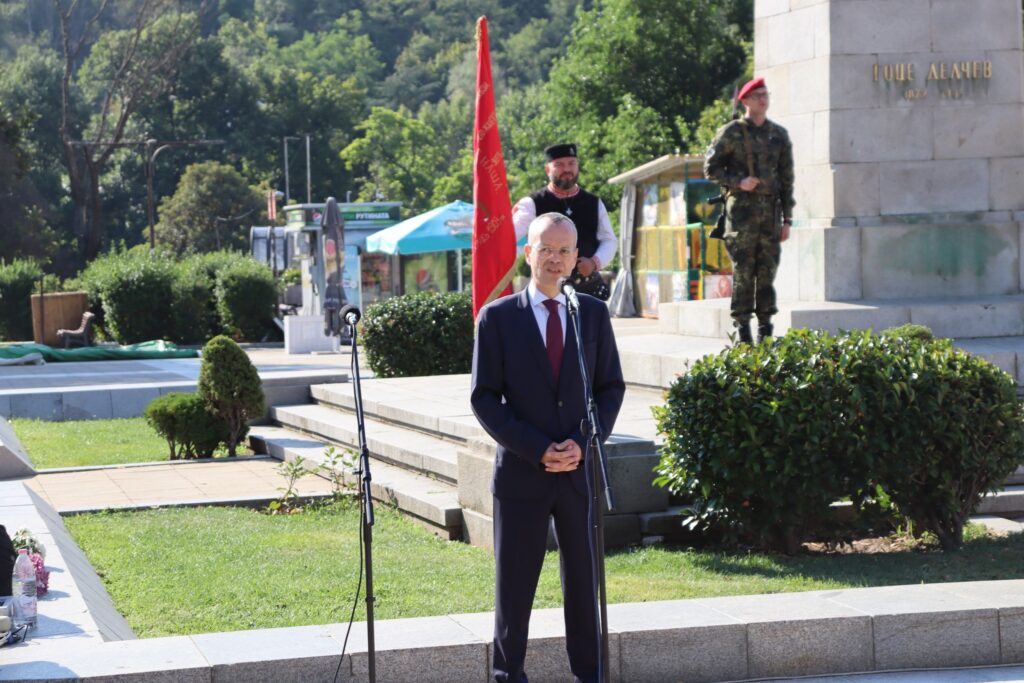 С церемония пред паметника на Гоце Делчев на площад „Македония“ бяха отбелязани 122 години от избухването на Илинденско-Преображенското въстание.