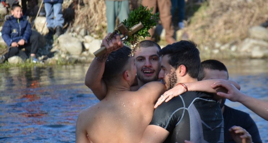 Въпреки студа, стотици се събраха по бреговете на Струма за Богоявленския ритуал – една от най-почитаните християнски традиции. Не повече от 2-3 минути продължи боричкането в ледените води на реката. Между студените капки, многото храброст и мускули, Блажко улови и вдигна християнския символ на Богоявление в Симитли. По традиция кметът на общината Апостол Апостолов го дари със златен кръст и синджир. Двамата играха в мъжкото хоро на Йордановден край огъня на брега на реката. Председателят на ОбС Симитли Владимир Христов и зам. кмета Евгения Георгиева също бяха на големия празник, който е изключително тачен от жителите на Симитли.