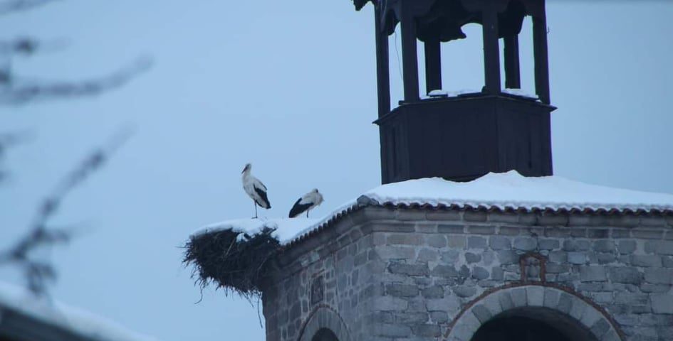От над 60 години покривът на камбанарията на църквата в Банско е дом на семейство щъркели. Преди дни, за да подготви гнездото си за ново потомство, в Банско се завърнал мъжкият. Сняг и студ обаче посрещнали символа на пролетта и новия живот.