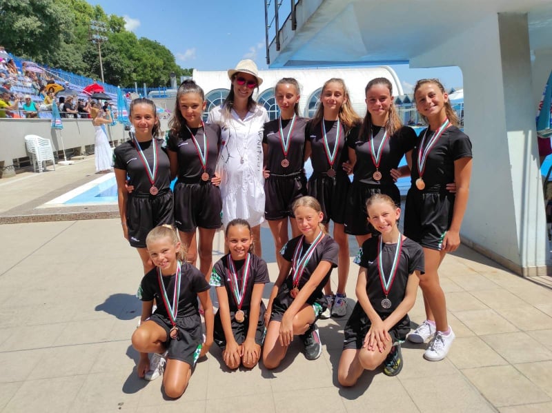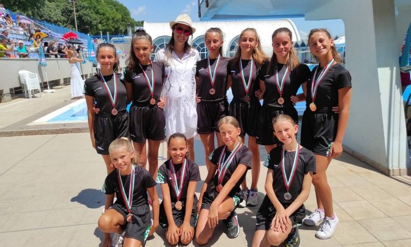 Състезателките на ПК “ПИРИН” извоюваха изключителен успех –златен, сребърен и бронзов медал на Държавния шампионат по артистично плуване, който се проведе от 22 до 25 юли в град Варна. Това е огромен успех за този спорт в Благоевград. Дуетът ни във възраст “деца” – Божидара Борисова и Велика Стоинкова с резерва Теодора Корчева извоюваха златен медал и шампионска титла. Сребърен медал извоюва ансамбълът ни при децата в състав: Божидара Борисова, Велика Стоинкова, Дара Зашева, Анхела Младенска и Теодора Корчева. Бронзов медал спечелиха момичетата ни в комбинираната програма в състав: Божидара Борисова, Велика Стоинкова, Ралица Георгиева, Теодора Корчева, Лила Ненкова, Спасимира Карабельова, Виктория Ваклинова, Ралица Георгиева, Александра Тупева и резервата Анхела Младенска.