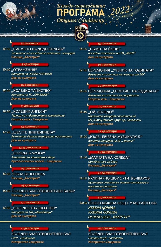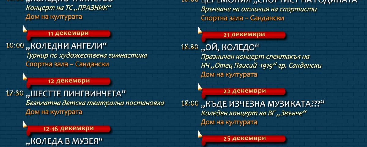 Богата програма през декември месец в Сандански