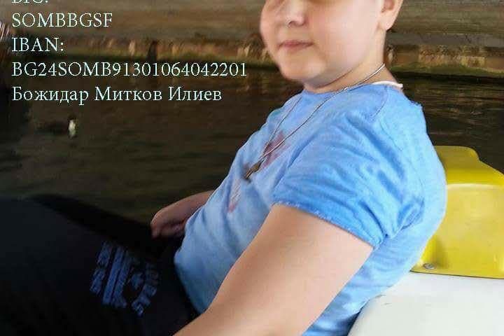 Божидар Митков Илиев се бори с диагнозата „Сарком на меките тъкани“, туморно заболяване. Операцията на Божидар мина успешно, но той отново има нужда от вас – неговите познати и непознати приятели. Той е едва на 14, а вече е преминал през житейски трудности, каквито не трябва да изживява никой – нито дете, нито възрастен човек. Вие, нашите читатели, постоянно доказвате колко големи сърца носите. Нека помогнем и сега на едно дете да порасне!
