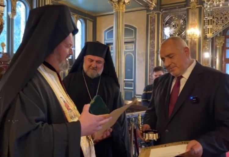 Бившият премиер получи дарение – камък, със символиката толкова да е здрава вярата му. Той получи и благословия пред владиката не само за българския народ, но и лично за семейството си.