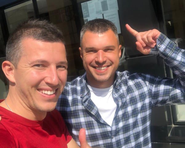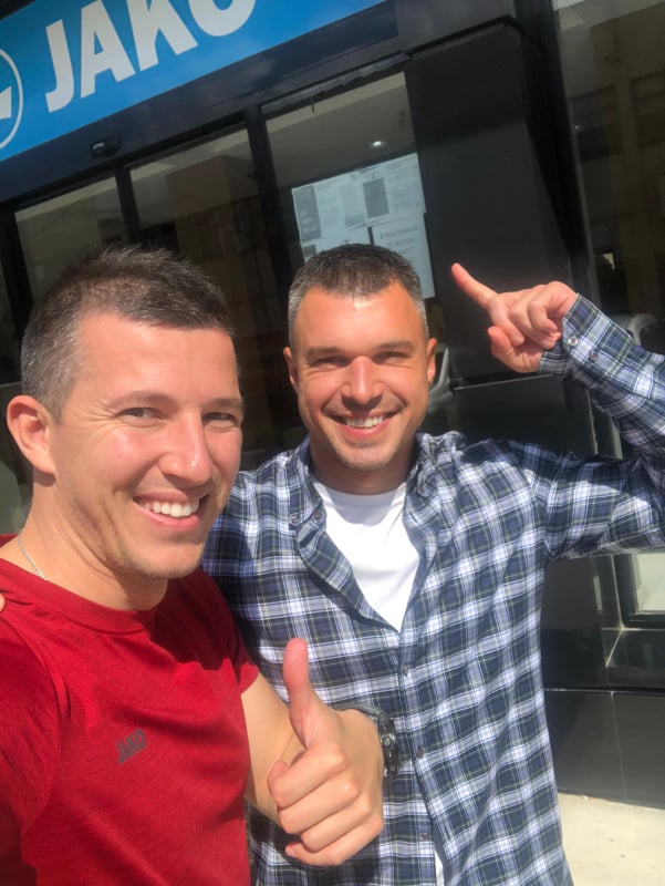 Бившите национали направиха своята среща пред спортния магазин на Илиян Мицански – JAKO. Валери Божинов разгледа качествените стоки в магазина и сподели, че са доста удобни и от добра материя. След което двамата си направиха снимка за спомен пред логото на магазина.