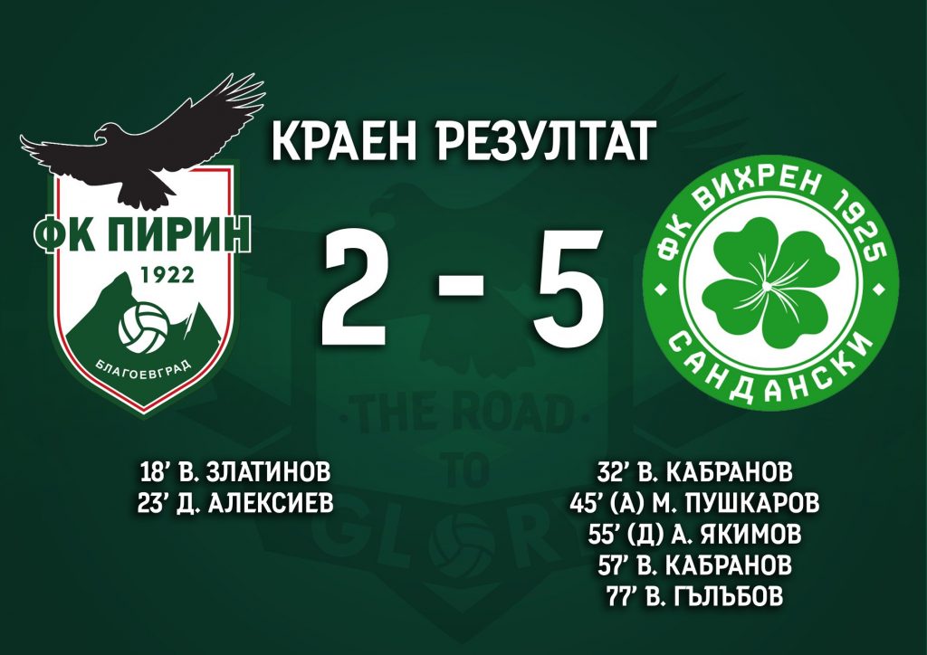 След почивката за Пирин стана страшно! С голове на Александър Якимов в 55-та от дузпа, на Кабранов след още две минути с втория му гол в мача и на Гълъбов в 77-та.