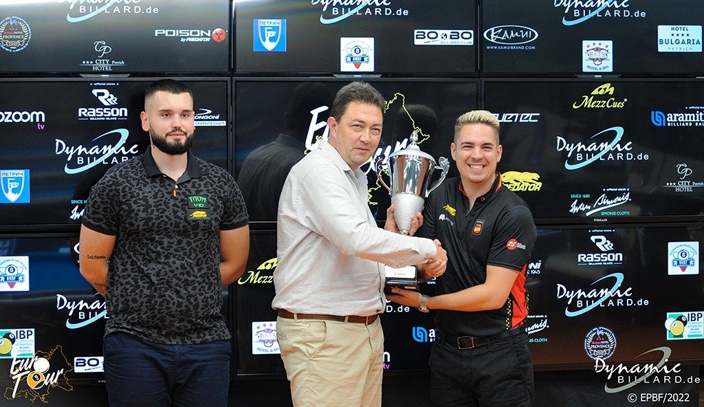 Успешно като организация и провеждане в зала „Арена Петрич“ се проведе кръг от Евро тур 2022 – мъже и жени в динамичния билярд. Оспорван финал между Франциско Санчез Руиз от Испания и Еклент Качи от Албания снощи завърши при резултат 9:6. Така испанецът вдигна трофея, връчен от кмета на община Петрич Димитър Бръчков. Освен паричната награда, победителят получава в своя актив и точки за световната ранглиста. Церемонията по награждаването уважи и инж. Костадин Стойков – народен представител в 47 НС.