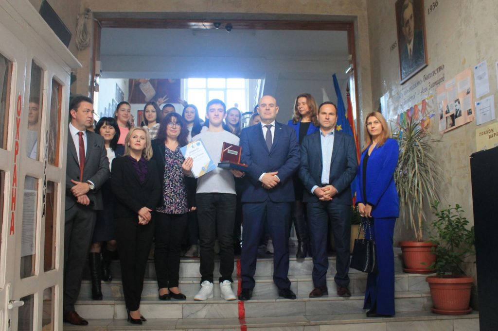 Главният прокурор Иван Гешев връчи Плакет на Прокуратурата на Република България на Георги Тимов – ученик в ПГИТ „Проф. Д-р Асен Златаров“, град Петрич.