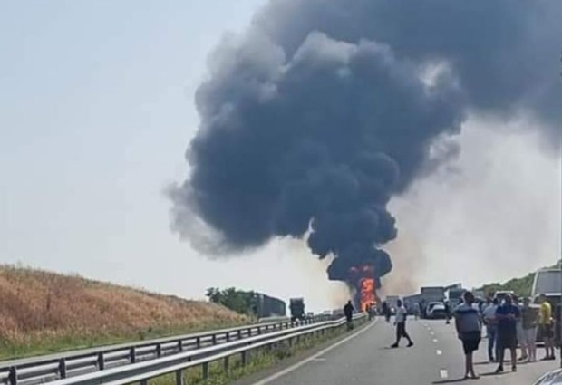 Горящият камион на АМ “Тракия” е превозвал лепило – има обгазяване в района, но няма пострадали