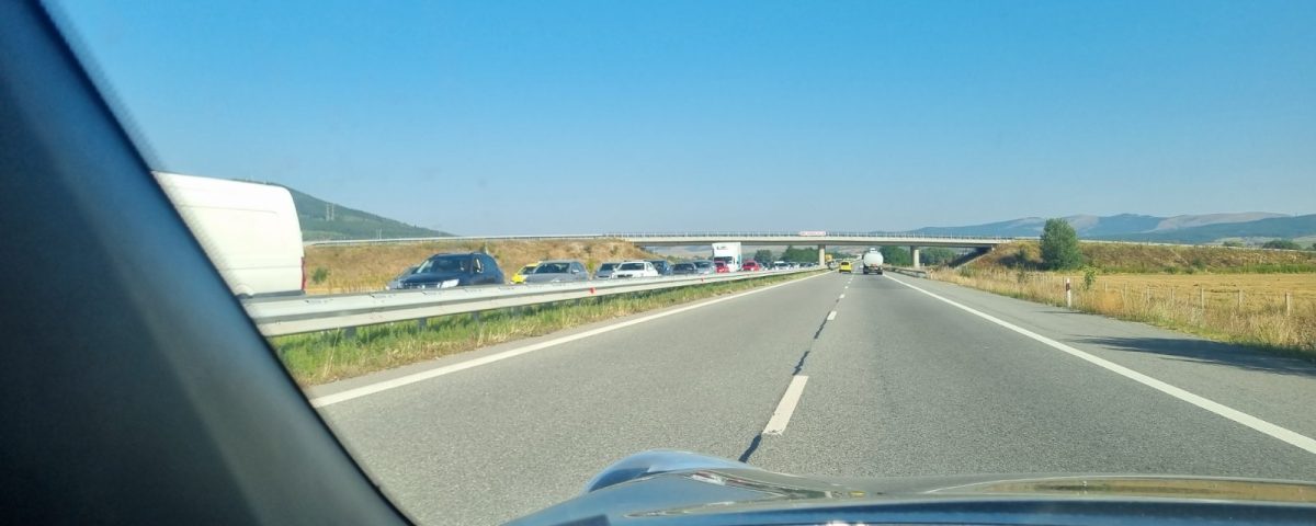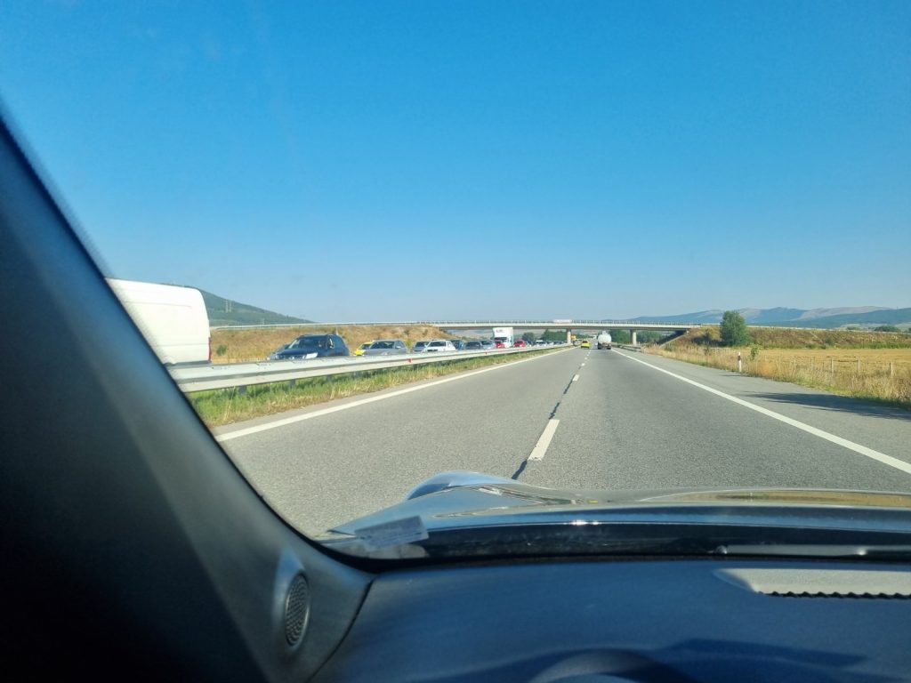 Тир горя на АМ “Струма” в посока граничния пункт “Кулата” и образува километрично задръстване. Инцидентът е станал на 41 км., малко преди Дупница. Наложи се движението да се изнесе в изпреварващата лента, а горящият тежкотоварен автомобил остана в аварийната.