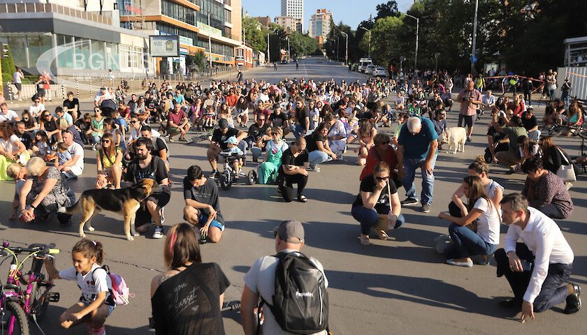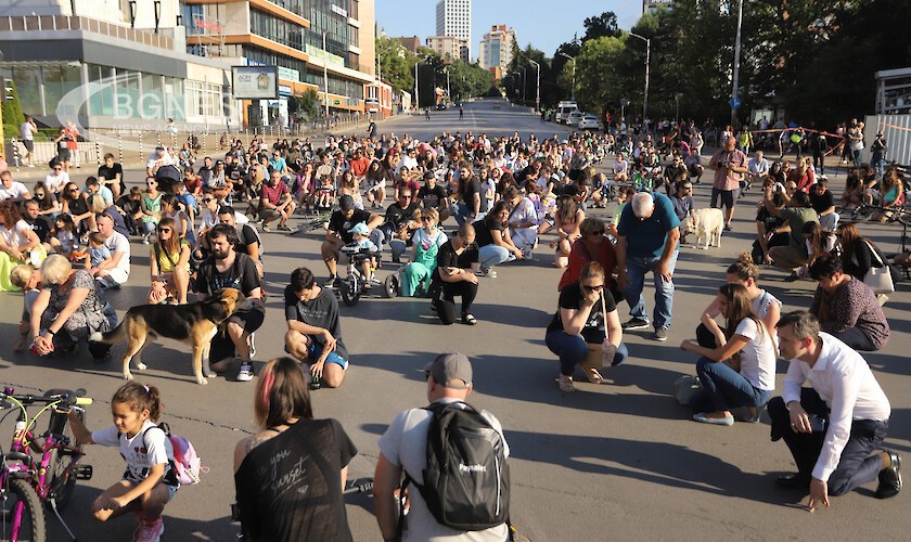Гражданите коленичиха по средата на кръстовището, запазвайки мълчание в памет на невинните жертви на пътя. /БГНЕС