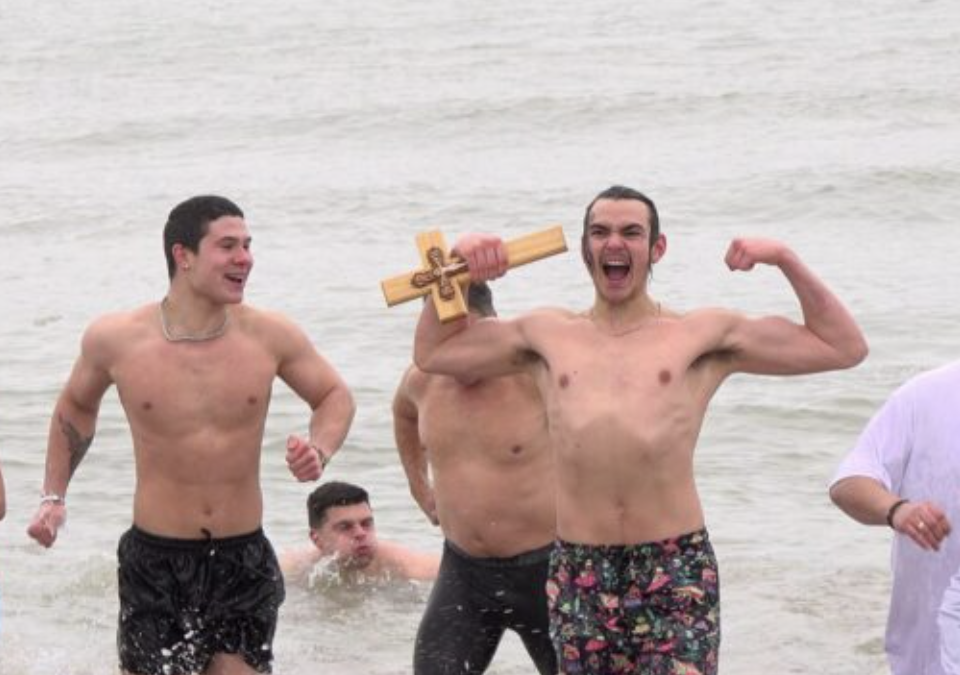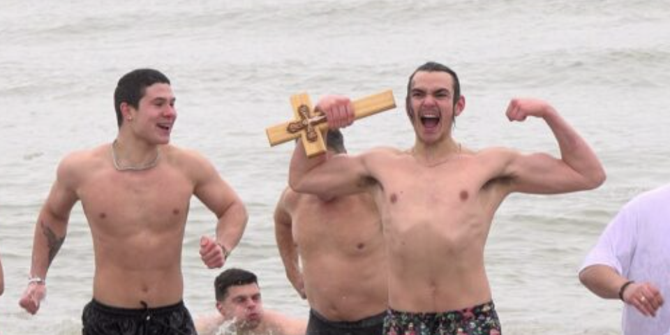 Деветима българи събраха куража и скочиха в ледените води на езерото Мичигън в чикагското предградие Евънстън, за да отбележат ден по-рано Богоявление.