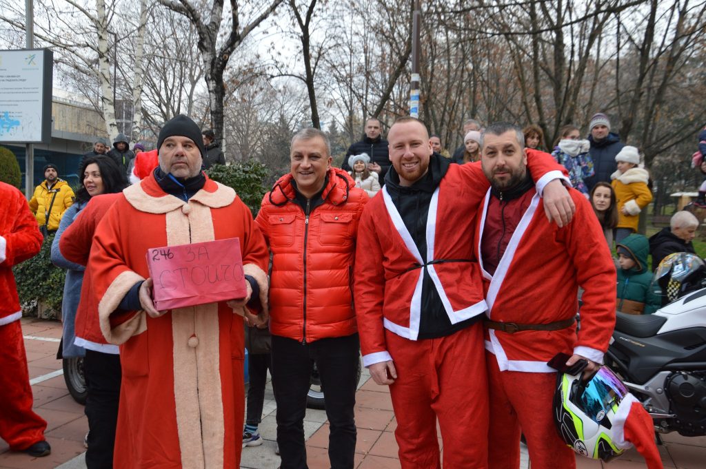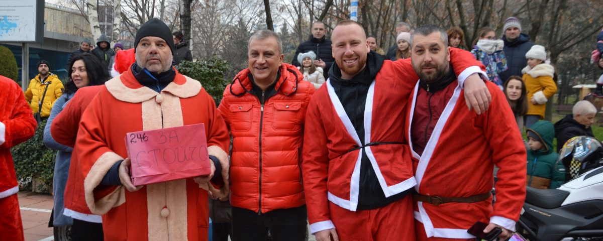 Десетки мотористи от мотоклуб „Кралете на пътя“, пременени като Дядо Коледа, посетиха Коледното градче в Благоевград, където раздадоха лакомства на децата.