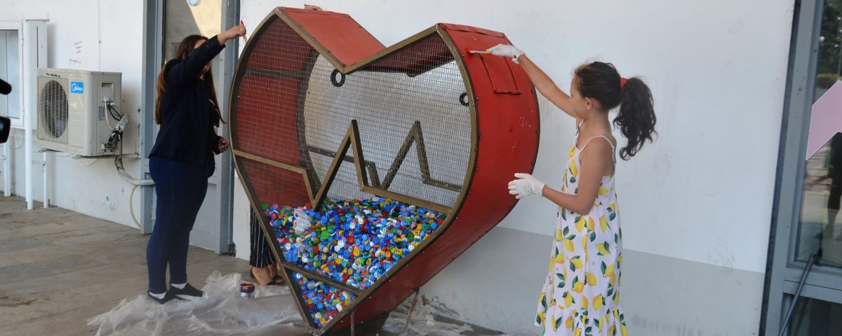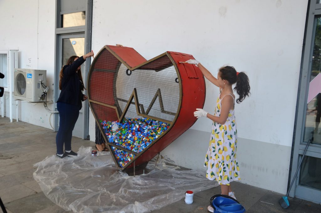 Представители на Детски парламент – Благоевград, заедно с доброволци, пребоядисаха металното сърце за пластмасови капачки , което се намира пред зала „22 септември“.