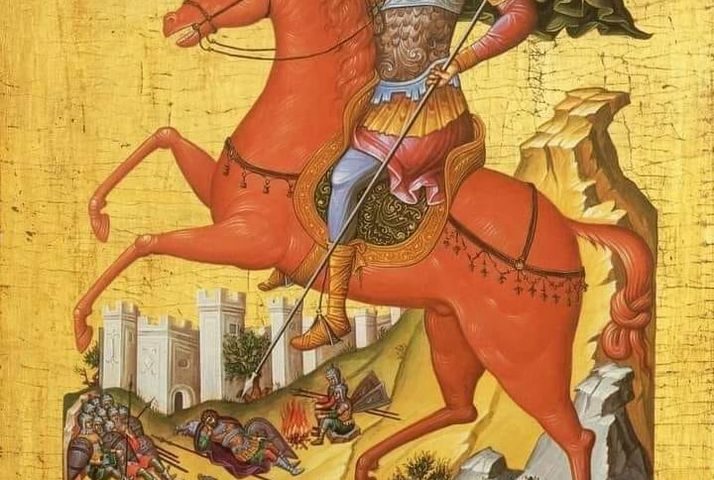 Свети Димитър язди на червен кон, а от дългата му бяла брада се изсипват първите снежинки.