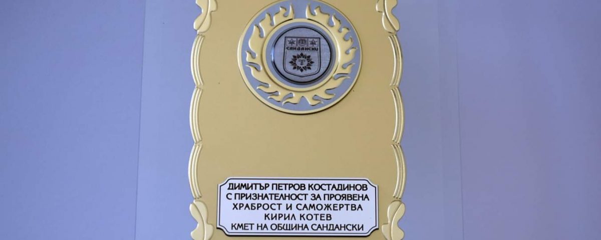 Община Сандански почете посмъртно проявата на граждански дълг и саможертва на Димитър Костадинов. Семейството му получи плакет за проявена храброст и саможертва.