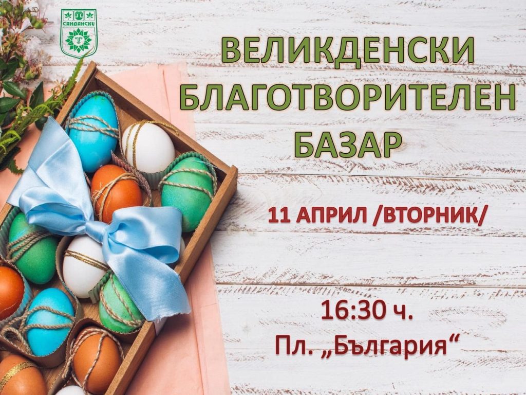 На 11април /вторник/, от 16:30 ч. община Сандански организира традиционен Великденски благотворителен базар на пл. „България“.