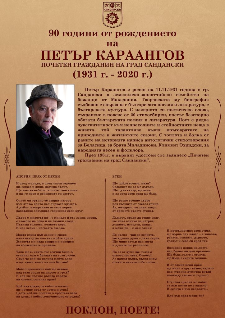 Днес се навършват 90 години от рождението на Почетния гражданин на град #Сандански – Петър Караангов (1931-2020).