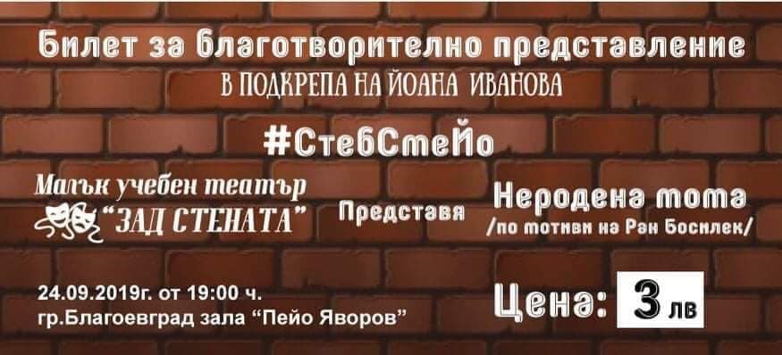 Днес учениците от СУ „Никола Вапцаров”, гр. Петрич представят спектакъла “Неродена мома” в Благоевград. Каузата на спектакъла е благотворителна в подкрепа на Йоана от с. Яворница.