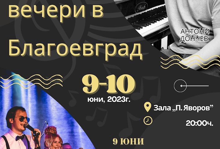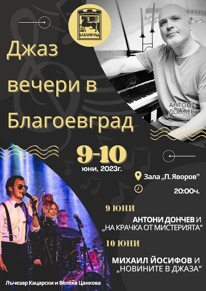 Днес точно в 20.00 часа под светлините на прожекторите на сцената ще излезе композиторът и пианист Антони Дончев, който ще представи пред благоевградска публика проекта „На крачка от мистерията“, създаден да съчетае два свята на необятност – този на традиционния български фолклор и на импровизацията, музиката на момента. Меломаните ще чуят кристалните гласове на София Янева и Христина Ненкова, и виртуозните инструменталисти Валери Димчев, Веселин Катерински и Орхан Гюзелев. За техни партньори са избрани музиканти, които създават днешния облик на джаза и импровизационната музика като Венцислав Благоев, Михаил Иванов и Стоил Иванов.