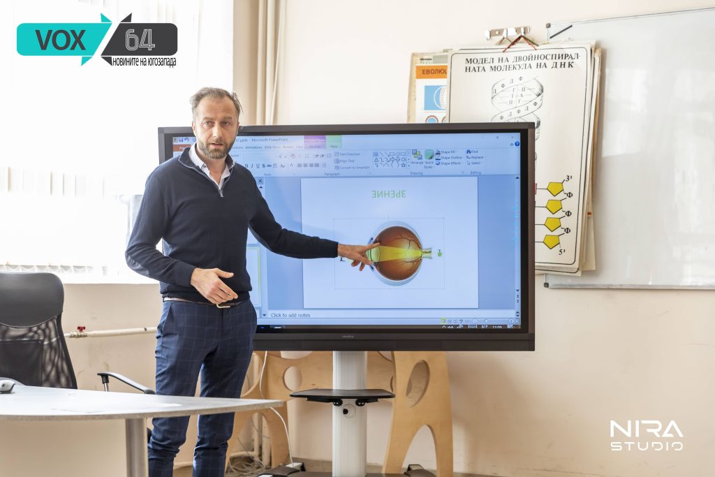 Днес д-р Христо Мегеров посети учениците от ПГ “Яне Сандански”, Яне Сандански във връзка със Световен Ден на здрението. Той доста изчерпатено представи презентация свързана със зрението, съвременните проблеми, начин за почивка на зрението и още много неща. След като приключи презентацията директор Снежана Николова подари юбилейно вино и вестник от юбилея на училището.