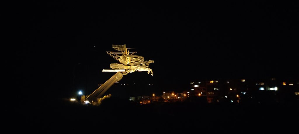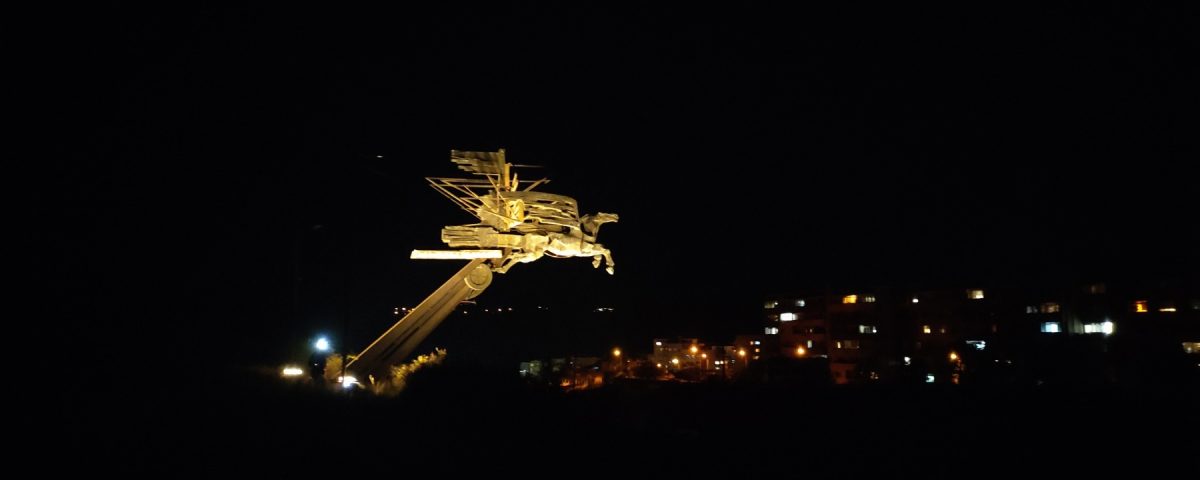 Празнично осветен ще посреща от днес нататък скулптурната емблема на Благоевград – конят на входа на областния център край кв. „Струмско“.