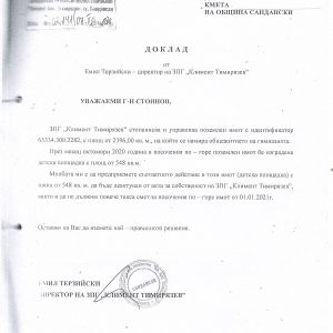 Второ, изкарвате на показ само част от последното изречение от доклада ми (с Вх.№02-141/07.12.2020 г.) до кмета на общината относно молбата ми за деактуване на имота. Част, която на Вас Ви е удобна, за да внушите, че: „за някакви си 200 лв. такса смет става въпрос“ . А във въпросното изречение от моя доклад съвсем естествено написах, че отправям молба да не дължим такса смет от 01.01.2021 г само за територията на площадката, а не за цялото общежитие.