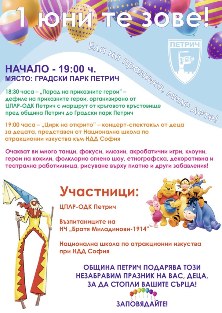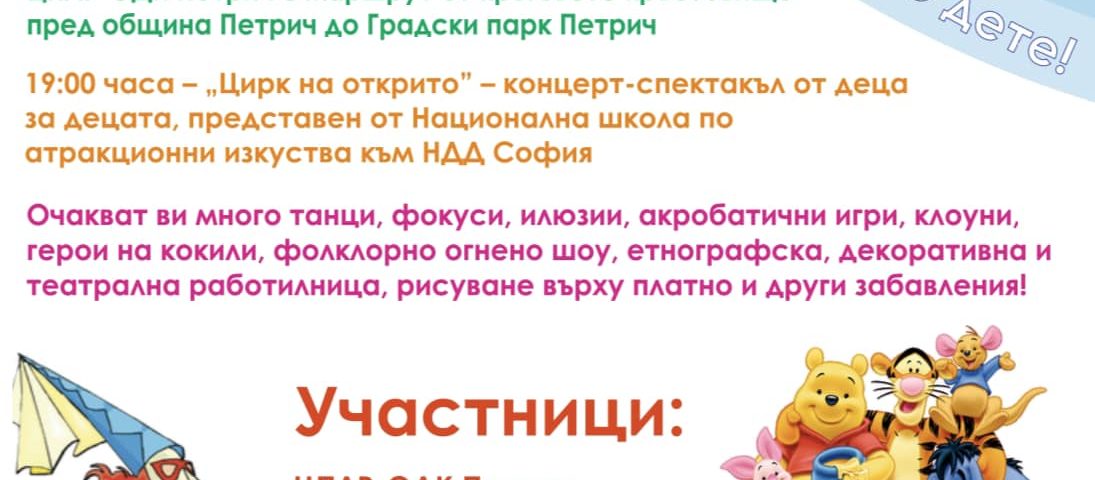 Денят на детето – 1 юни очаквано ще бъде отбелязан с много веселие и изненади, творчество на открито и вълшебства в градския парк на Петрич.