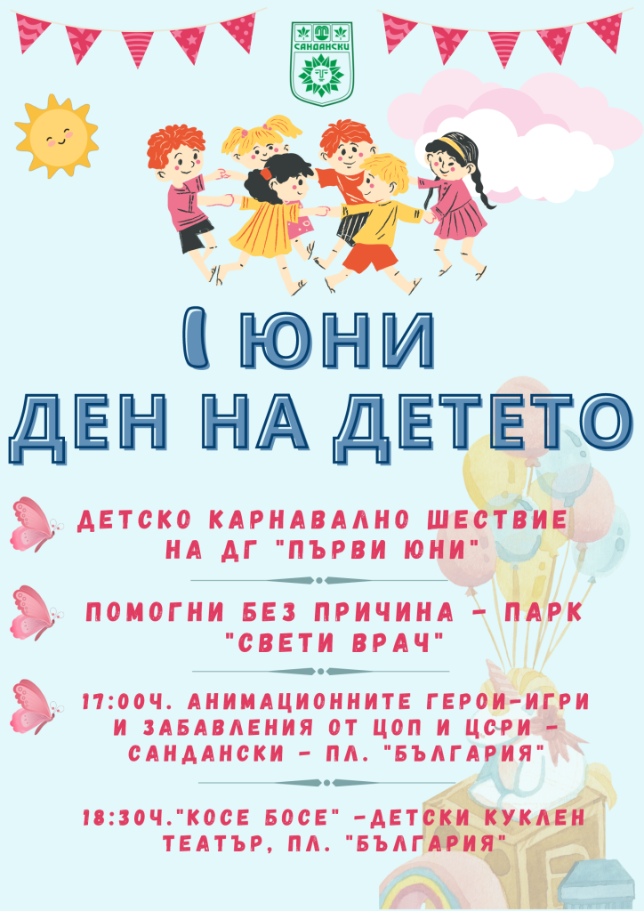 С разнообразни забавления и игри, децата на община Сандански ще отпразнуват своя празник – 1 юни.