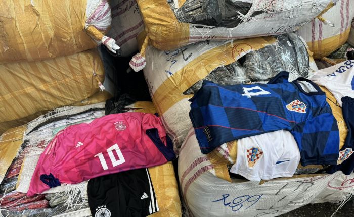 В хода на контролните действия митническите служители установяват в товара 164 колета, съдържащи 26 755 текстилни изделия, по-голяма част от тях тениски и спортни комплекти с логото на национални футболни отбори от Европа. На част от тениските са изписани и имената на известни футболисти. В колетите са открити още 160 чифта спортни обувки и 118 чанти със знаци на известни спортни марки, съобщават от Агенция “Митници”.