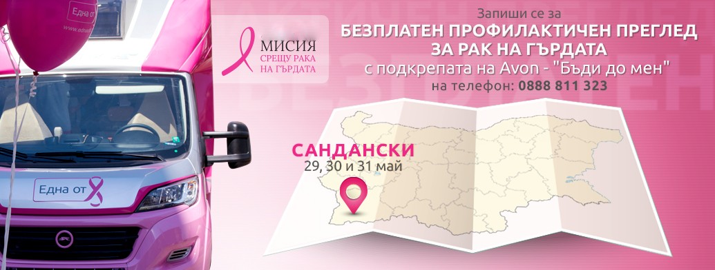 Фондация Една от 8, със съдействието на Община Сандански организира безплатни профилактични прегледи за рак на гърдата в град Сандански по съвместна програма с “Бъди до мен“.