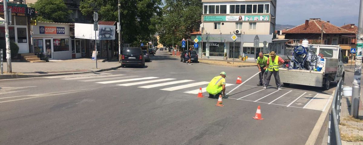 Дейностите стартират от 21.08.2023 г. в първите четири дни, с машинно полагане на студен шприц пластик, двукомпонентен за напречна хоризонтална маркировка на кръговите кръстовища: пред „ЛИДЪЛ”, пред „Бела Стил”, пред Община Петрич и на входен булевард.