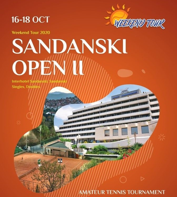 Семейната тенис и СПА верига Уикенд тур организира за осма поредна година Sandanski Open II. Надпреварата ще продължи от 16 до 18 октомври, като в петък ще се проведат официалните тренировки. В събота са мачовете в групите от турнира на сингъл мъже и жени, а в неделя са елиминациите на сингъл и турнирите на двойки мъже и смесени двойки.