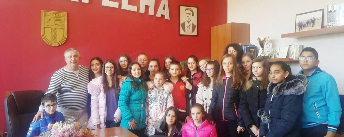 Следобед участниците в акцията бяха приети от кмета на общината Николай Георгиев, на когото честитиха настъпващия празник и го поздравиха за наградата в категория „Кмет на гражданите” в националния конкурс „Кмет на годината 2017”. Разговорът отново бе за будителите. Господин Георгиев, който и друг път е показвал пристрастията си към поезията, рецитира наизуст пред гостите „Братчетата на Гаврош” на Смирненски. Особено актуално и тъжовно в кабинета прозвуча стихотворението на Любен Каравелов „Хубава си, моя горо”, представено от група шестокласници.