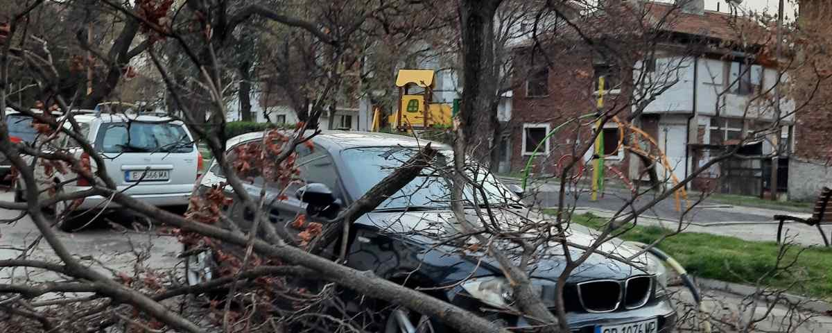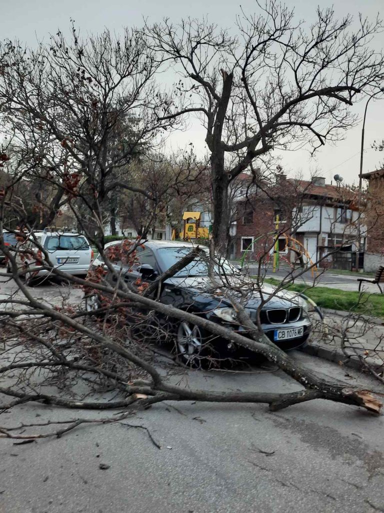 Рано тази сутрин лек автомобил БМВ осъмна премазан от паднали клони по предния капак и тавана в Сандански на ул. “Лагадина” .