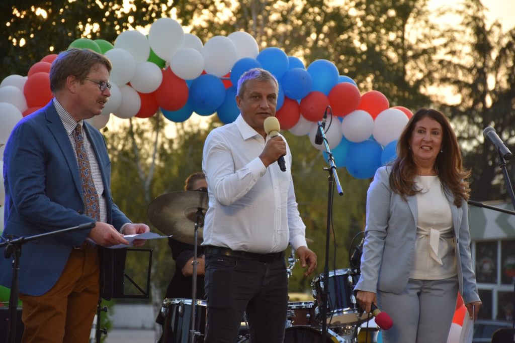 „Благодаря на всички вас, с които сме заедно в този момент! Благодаря на посланик Херо Мустафа и президента на Американски университет в България Дейвид Еванс! Това е още едно доказателство за добрите взаимоотношения, които имаме, за нашето приятелство. С този фестивал поставяме основата на нещо много позитивно, точно във времена, в които всички ние имаме нужда от повече усмивки“, каза в част от приветствието си кметът Илко Стоянов.