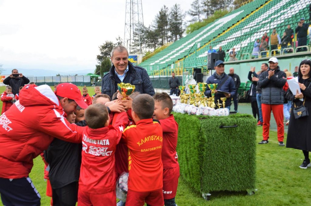 Официална церемония по награждаване на млади футболни надежди постави края на Международния футболен турнир „Пиринска Бундеслига“. Големите победители в първото издание на футболната надпревара са ДЮФК „Хлапетата“ – Благоевград. Те заеха първите места при родени 2015 и 2013 г., а кметът Илко Стоянов връчи купите и медалите на шампионите. „Благодаря на всички още веднъж. И в началото, когато открих турнира и сега емоцията е голяма. Тази енергия, която ни дават децата се усещаше още в началото. Тук със сигурност има бъдещи шампиони. Вярвам в това! Благодаря на всички деца, които положиха усилия, благодаря и на родителите, които стоят зад тях и ги подкрепят“, каза кметът Стоянов.