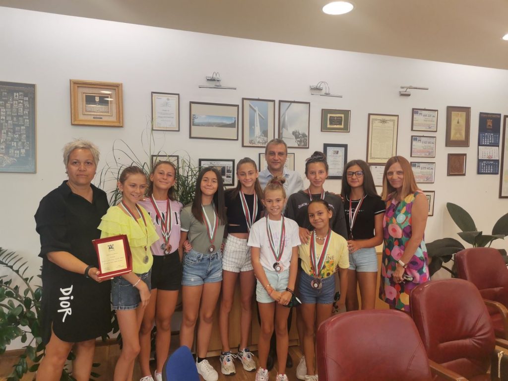 Благоевградските момичета от отбора по Артистично плуване към Плувен клуб „Пирин“ извоюваха голям успех на Държавния шампионат във Варна – златен медал и шампионска титла, сребърен и бронзов медали. За да ги поздрави лично и за да им благодари за отличното представяне, кметът Илко Стоянов покани на среща състезателките от отбора по Артистично плуване, треньорките Миглена Бояджиева и Христина Димитрова, и председателката на ПК „Пирин“ Валентина Атанасова.