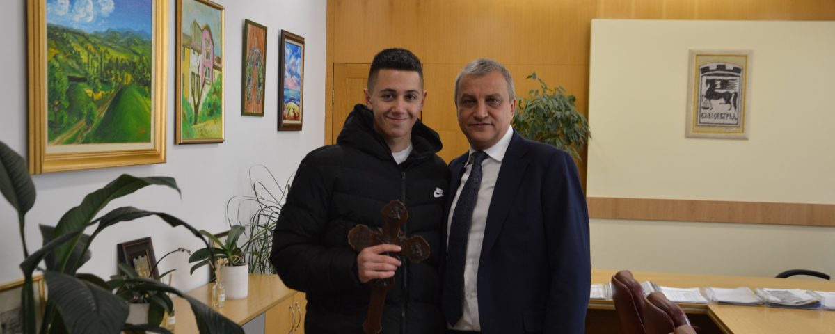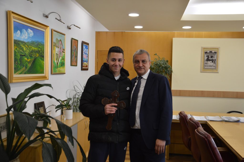 Кметът Илко Стоянов посрещна Марин Гълъбов, който извади Светия кръст в Благоевград.