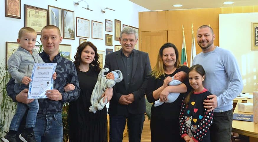 Градоначалникът връчи подарък от името на община Благоевград и пожела на семейството да бъдат здрави и благословени, да се радват на успехите на своите деца.