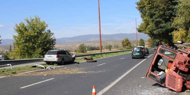 Трактор причини катастрофа на главен път Е-79 на изхода на Благоевград, в посока пътен възел Рилци-Бело поле. При инцидента няма пострадали, съобщава БГНЕС.