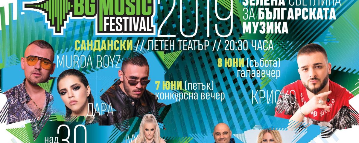 За трета поредна година BG Music Festival събира на едно място едни от най-големите музикални звезди на България. Криско, Dara, Murda Boyz, IVY, Мonty & Petya Alexa са хедлайнерите на тазгодишното издание на фестивала, който ще се проведе на 7 и 8 юни в Летния театър на град Сандански.