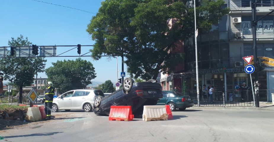 Лек автомобил се обърна по таван малко преди 9 часа тази сутрин на кръговото кръстовище между булевардите „Васил Левски“ и „Св. Димитър Солунски“ в Благоевград.