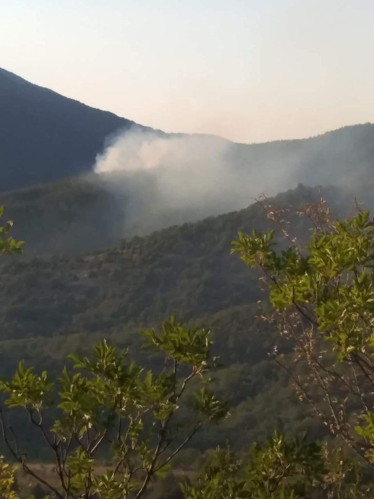 Огънят е обхванал 50 декара борова гора по източното било на дефилето, под село Стара Кресна.