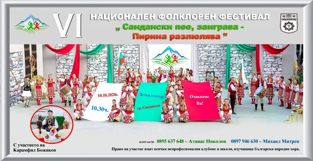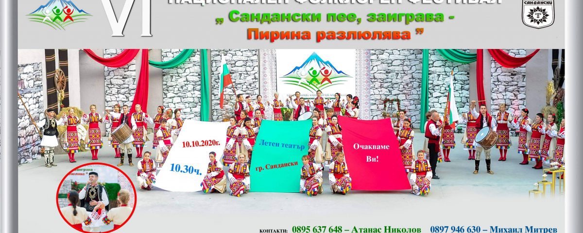 Град Сандански отново ще бъде сцена на българските народни танци. В рамките на Шестото издание на Фестивала „Сандански пее, заиграва – Пирина разлюлява” , което ще се проведе на 10 октомври /събота/, любители танцьори от всички краища на страната ще имат възможността да се насладят на българските народни ритми!