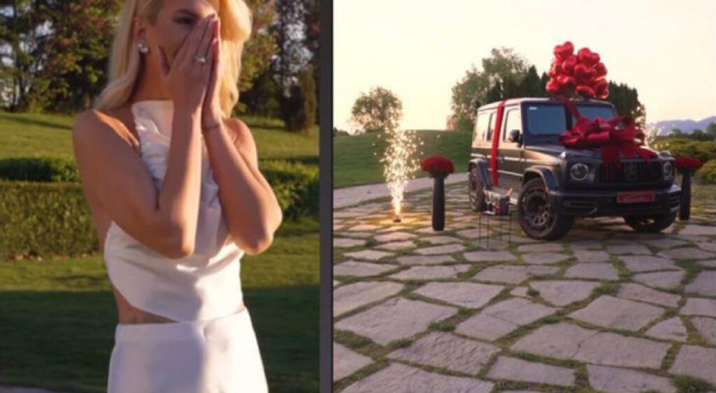 Във видеото отлъчената от Алек Младенов мома не може да скрие емоциите си, породени от лъскавия подарък, а последователите й я заливат с въпроси кой е мистериозният и щедър любовник.