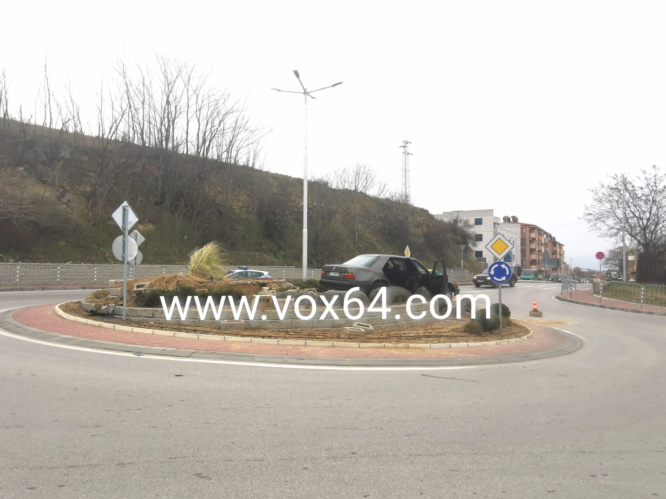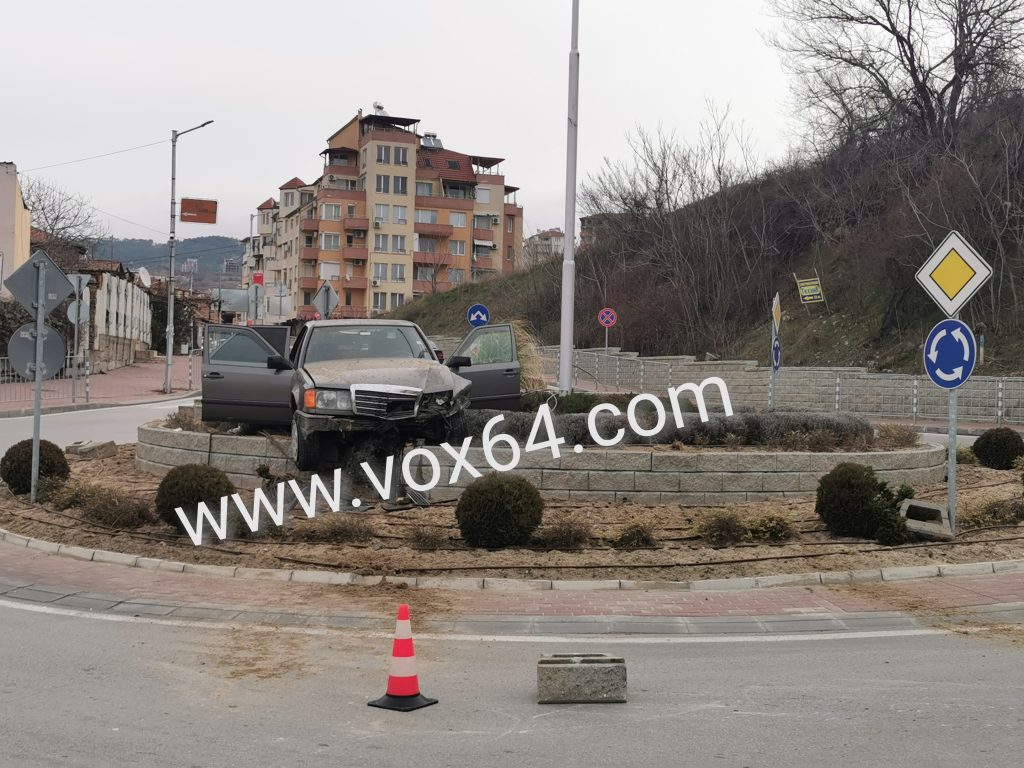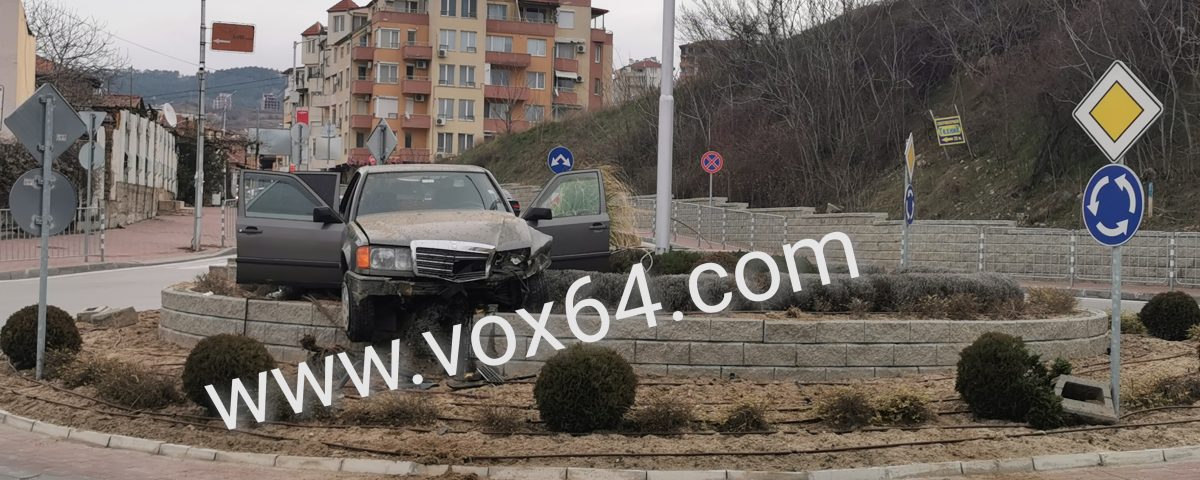 Около 7:55 часа тази сутрин, лек автомобил “Мерцедес” се качи върху кръговото кръстовище в град Сандански. В автомобила са пътували млад мъж и жена, които нямат наранявания.