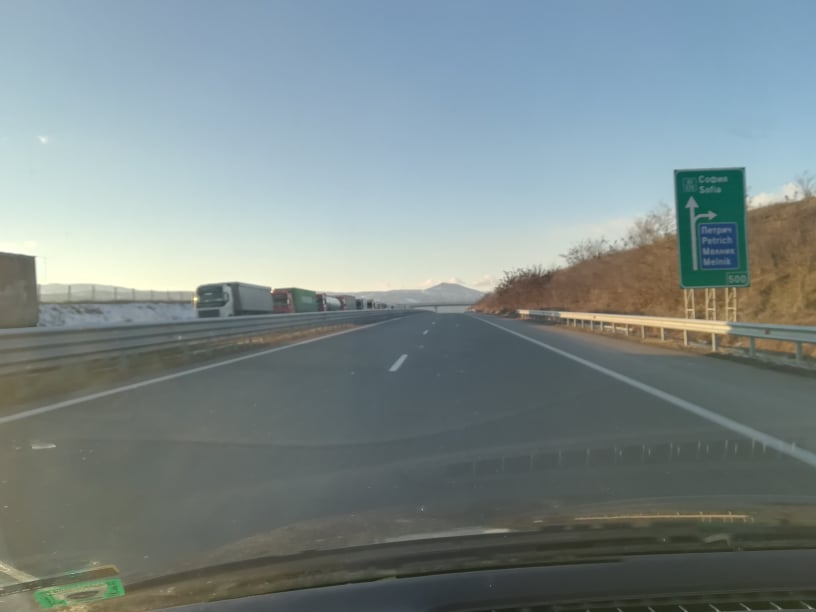 За последните 48 часа колоната от камиони пътуващи в посока Гърция е над 14 км. В момента колоната е до отбивката за гр. Мелник, което е на няколко километра от град Сандански.